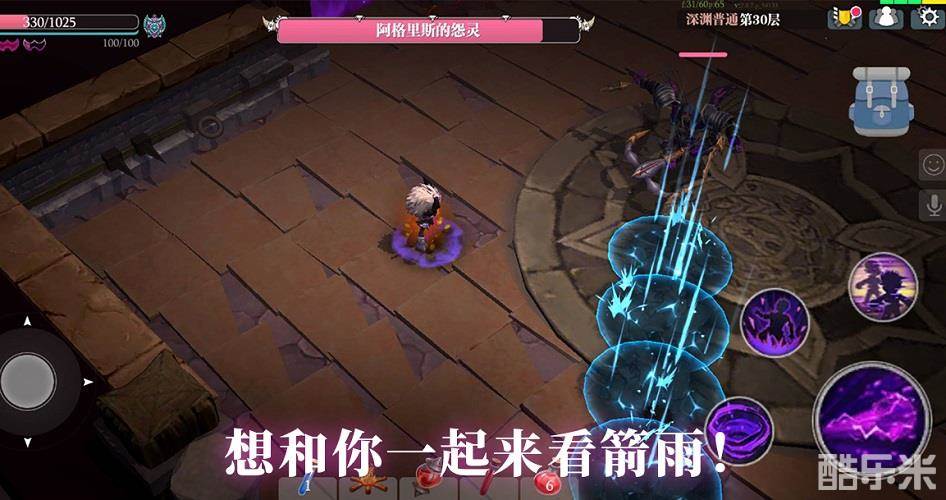 第30层的Boss阿格里斯的怨灵,向玩家表白“想和你一起来看箭雨”。这位Boss手很多,同时使用两把镰刀和弩箭,还能向前方扔飞镖。阿格里斯的怨灵分身以后,弓箭部分的分身会使用弩箭朝场上随机方向发射附带闪电伤害的箭雨,并产生范围爆炸。某种意义上,也算是名副其实的“一起来看雷阵雨”了。