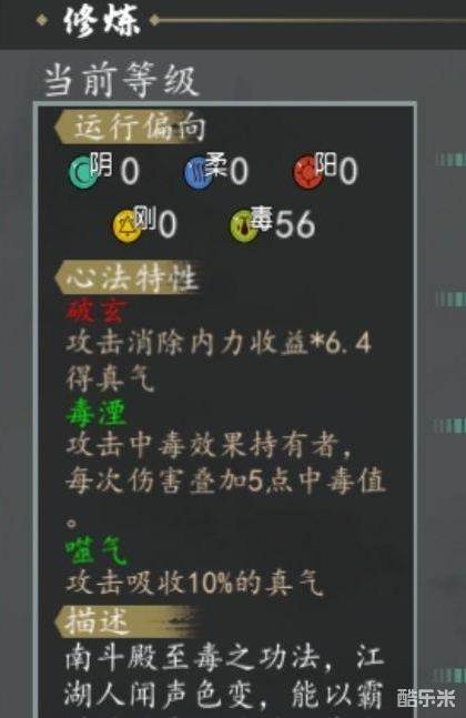 推荐理由:紫色毒心法里面最好的一本心法了吧,心法效果像低配版的北冥,主要是不与其他的毒心法效果冲突,属性也还可以。