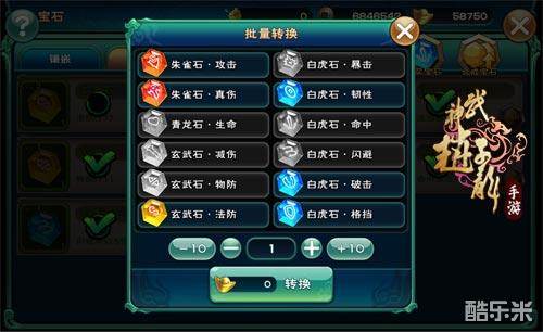 细心的玩家可能发现,许多时候包裹里的宝石不是自己想要的宝石,这个时候就可以通过宝石转换能获取自己所需的宝石。需要注意的是,已镶嵌的宝石需要先行摘除后才可以转换,可以将宝石转换为同级其他类型宝石。宝石转换需要消耗元宝,且等级越高消耗的元宝数目就越多。还可以通过批量转换来实现大批次的宝石转换,有目的针对性的有效转换。