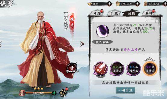 最后一个值得当成主力培养的减益流侠客,就是能够概率复活的一灯大师。