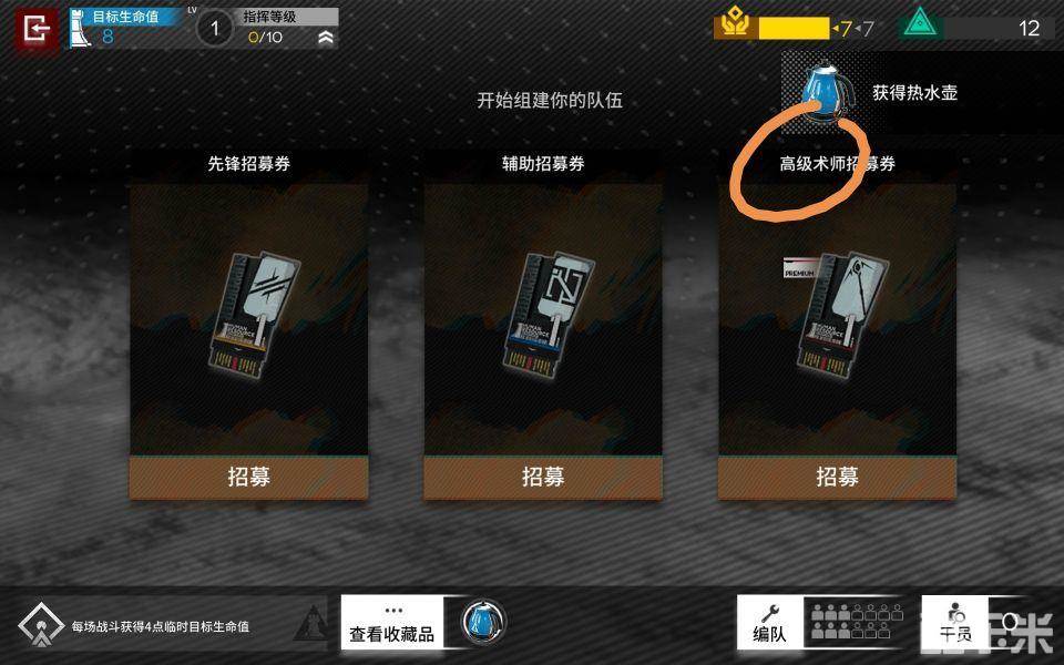 2直接招募干员配置如玩家练度,且3星花0,四星花2,五星花4,六星花6希望。