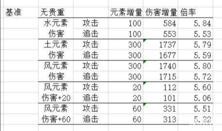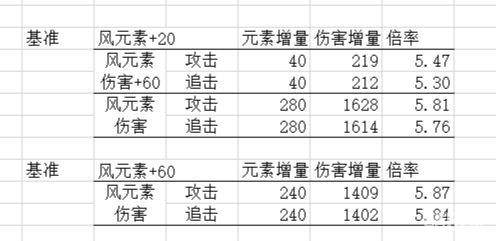 以风+20为基准时,+60显然倍率偏低,受到元素抗性的干扰大,+100则计算的倍率在5.7~5.8
