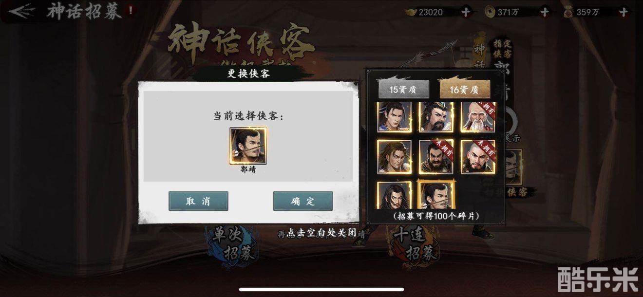 相比高招我个人多了一个郭靖(说有林朝英但我没有,难道v11以上才会有?),神招相比高招最大的区别就是只出选定侠客和材料(2个传说或者1个神话自选,但肯定选传说嘛),首先这个东西后面必须要招,因为55级开宝石系统有一半的只有这一个途径出,所以必须神招(早招晚招早晚要招)