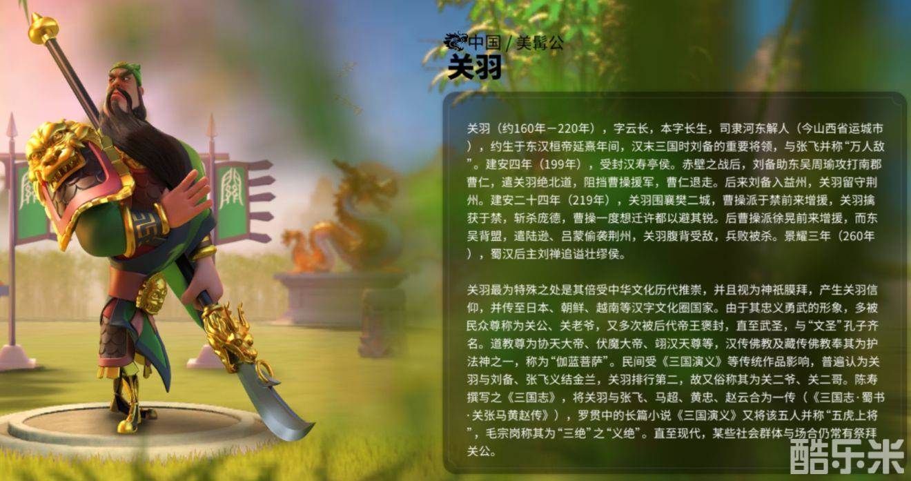 都是一代武将一代神,三代步兵在关羽这里得到了完美体现,一改往日步兵加盾加肉,防御挨揍的特性,直接抡起大砍刀就是暴力砍人,由于还是aoe,所以野战面对一群关羽谁都要头皮发麻!关二爷可是三国演义中曹操都一直想得到的男人,先来看历史涨姿势!
