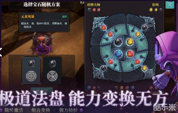 元素风暴是增加伤害的法盘组合;磐石护体能为我们吸收大量的伤害;影武者会为我们制造一个分身。