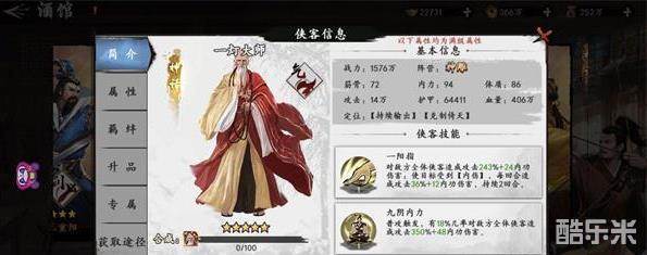 一灯我没有所以看不到专武,这个侠客很有趣,特色是欧皇复活?克制倚天在现版本确实还勉强能用,高内力理论上对应高输出,但确实比较作用较为狭隘