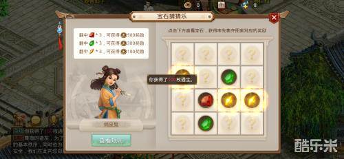 贪吃的俏皮鬼想吃糖果了,带着糖果到天墉城广场找到他,就可以开玩宝石猜猜乐哦~每次游戏需要消耗1颗糖果,每天会获得3个免费糖果,之后每天最多可消耗银元宝购买10次机会。