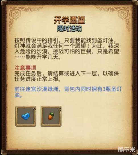 这个任务小编推荐组合冒险者+雅典娜+匹诺曹速刷沙漠绿洲,拿到圣灯油。