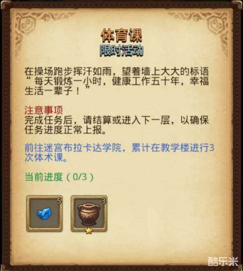 终于到了大家最爱上的课(也是老师最爱生病的一门课),本任务和现实一样简单,在布拉卡达学院教学楼进行三次体术课即可。