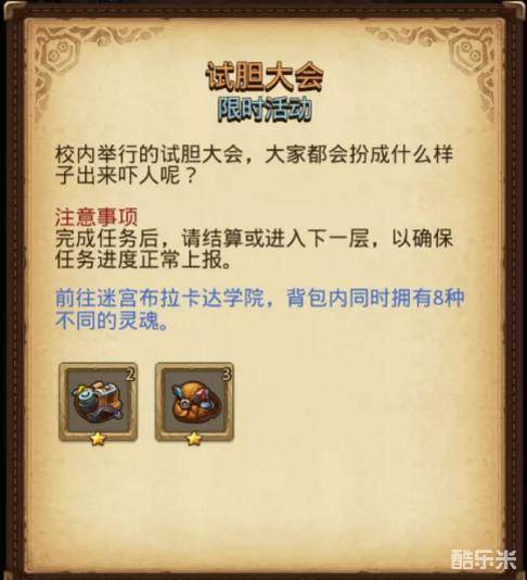 作为迷宫的冒险者,除了学习各种理论课程外,胆气也是“必修课”!布拉卡达学院迷宫试胆大会正式开启!前往迷宫,收集八种灵魂,即可把电池包和改造材料包奖励打包带走。