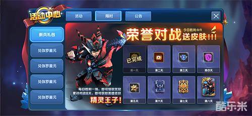 每日上线对战胜利1次即可领取当日奖励,卡包、夺宝卷、皇冠等你拿,累计参加8次,还可免费获得精灵王子——恶灵骑士皮肤奖励。