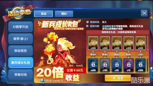 为助力新人成长,达到指定段位即可领取丰厚奖励,包含卡牌碎片、夺宝卷等超值奖励。同时还有限购礼包,20倍收益等你拿,加大幅度助力你成长!
