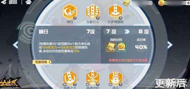 这个技能的改动在于可以有额外的对专属技能的辅助效果,可以将专属技能的生效方位向周围提高一格。这个技能的改动很好的改善了之前专属技能的伤害低的缺点。