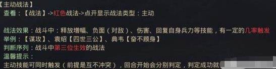 率土中最看脸的战法类型,能让你打出以少胜多、白板打满红的战绩,也能打出8回合0发动的“神奇”战绩,在正式回合开始后发动。