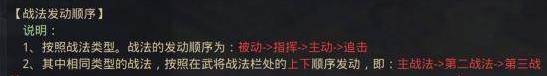 由图可见,战法发动顺序为:被动战法→指挥战法→主动战法→武将普通攻击→追击战法