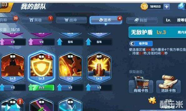 法术类卡牌是指战场上即时施放,即时作用的卡牌。它们有着临时性,只在规定的时间范围内产生作用,提升我方兵种某一方面属性或削弱对方兵种某一方面属性。在战斗过程中,法术卡牌的辅助是必不可少的一部分,我们的卡组中至少都应该为两种法术留位置。