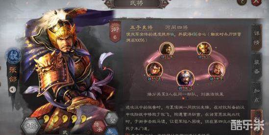 缘分方面,张郃可组“五子良将”与“河间四将”,这两个缘分的效果都非常不错,但是由于武将兵种适性不兼容、武将自身不够强力等原因,在战场上基本见不到这两个缘分的队伍。张郃通常被用来传承战法或是当做一个替补工具人。