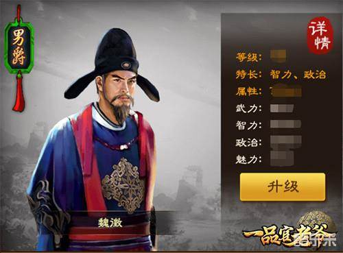(1)官品升级将解锁门客,增加智力属性,接近上限后,暂时不升级官品;