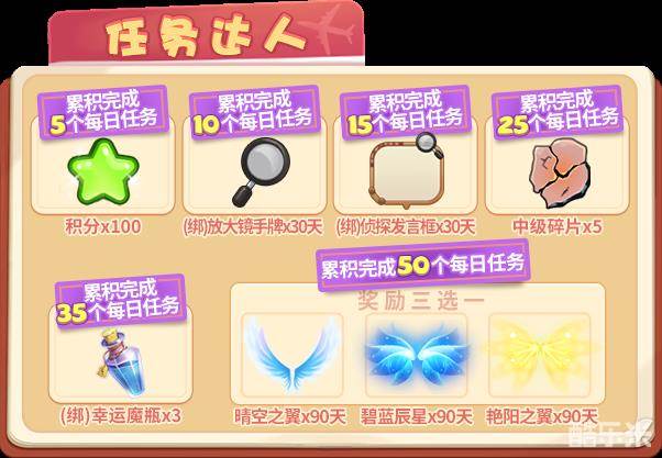 活动期间,累积完成对应数量的每日任务,可获得额外奖励!