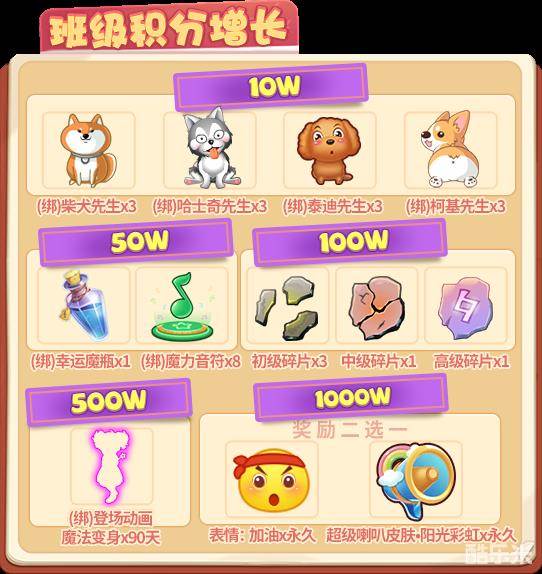 当班级的游戏积分总增长达到对应条件,所有该班级的同学都能领取相应奖励!