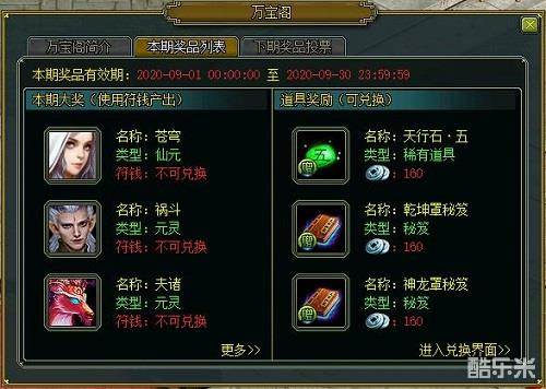 除此之外,每个月20号至月末,在当月兑换元宝超过1000元宝的玩家,还能够对下一期的可兑换奖励进行投票,决定下一期中万宝阁中的道具类型哦!《问道》9月万宝阁活动正在火热进行中,多重好礼静候道友,更多精彩等你来体验!