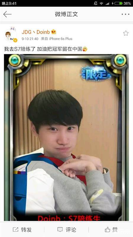 刚刚JDG王牌中单Doinb发微博称将去S7陪练,把冠军留在中国。