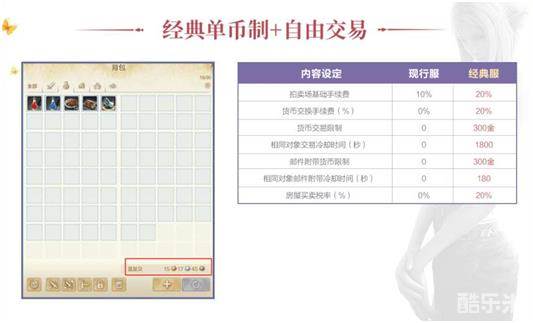 在近日的爆料中,大家一直关心的经典服是否为单币制问题官方已给出肯定答案,据对经济系统相关内容的爆料,此次经典服确定采取的是经典单币制,外加自由交易系统,相应的拍卖行手续费、交易限制等也有所调整。拍卖场基础手续费从10%上调至20%,货币交换手续费上调至20%,另外,货币交易限制以及冷却时间均有所改动,房屋买卖税率也从0上调至20%。