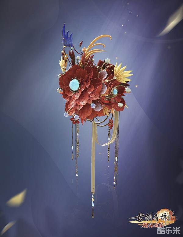 金丝交错于鲜红的花瓣之间,珠翠的点缀让整体又多了一抹亮色,一簇花团相拥,明艳美丽,华彩非常。