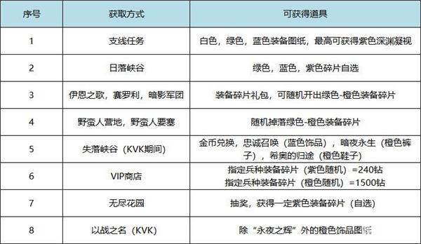 建议:低级装备可通过任务获得,如果装备材料不足,可通过不断合成再分解的操作刷新任务,来获得更好的装备,但是必须要每种图纸留一个。分解:不返还图纸,但全额返还材料,橙色装备只返还一般材料。
