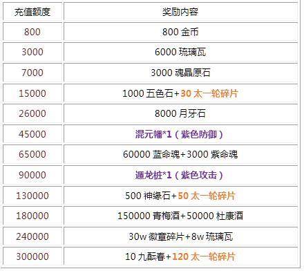 【活动内容】活动期间,游戏内累计充值达到对应金币,即可获得对应奖励;所有商品绝对超值,不信你自己看。相中哪个千万别手软!因为一犹豫也许就不知道何时能再见了。