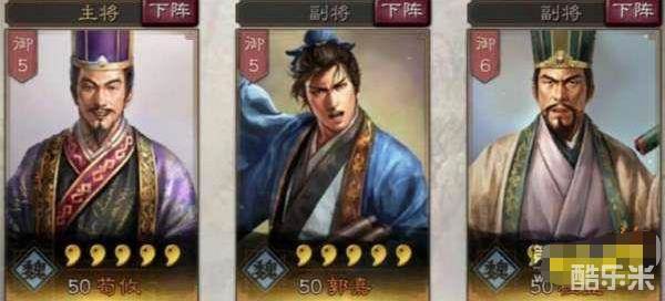 点评:郭嘉在这套组合当中的作用主要是使用“锋矢阵来”阵法来提高整个组合的爆发输出,并且让吕布在突击的时候拥有免疫减伤的buff,减少吕布的伤害的同时增加吕布的稳定系以及降低战损,可以在玩家前期较高兵力的时候使用,之后便可以依靠兵力优势碾压。