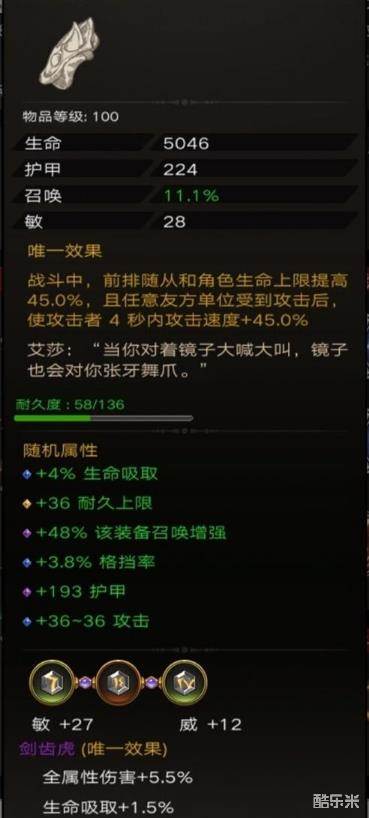 看了这个突然觉得雷神之矛的增加格挡率和英灵很搭,一样是镜面反射这个词缀,前期格挡率低还是不建议带。