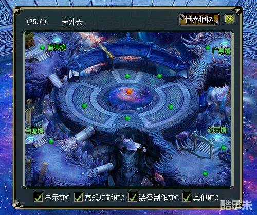 《问道》还开放全新地图天外天,玩家可通过天机老人处进入。天外天中包含摩夷境、天墟境、幻灭境、广寒境等四个小地图,本次全新地图场景宏大,每一个小地图中都有自己的守护神,成功挑战地图守护神还可留下队伍雕像,名传中洲。另外,小地图中可以刷出全新170级野外boss“域外天魔” boss一天会刷新6次,单线3次、双线3次,系统会在每个boss刷新之前5分钟,在公屏上进行提示。