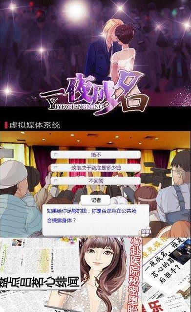 一夜成名一款好玩有趣的休闲养成游戏,游戏画面风格舒适,人物建模精致,画面流畅炫丽,深度表现娱乐圈光芒背后辛酸,带你走入娱乐圈的爱恨情仇!赶快下载吧!