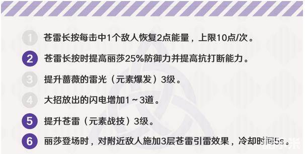 固有天赋-电感余震:重击也可以为敌人附加引雷效果,增加叠引雷的速度。