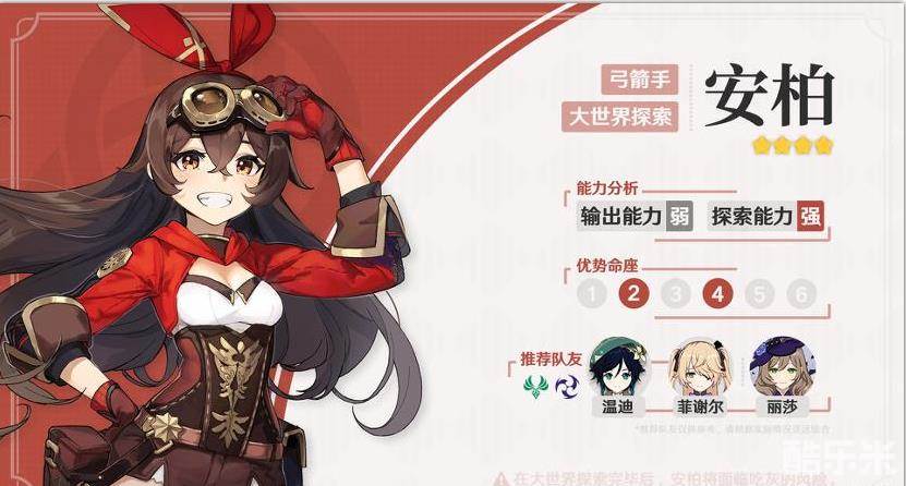 乐观来说,安柏作为火元素弓箭手,在大世界中的探索能力是无人能出其右的。