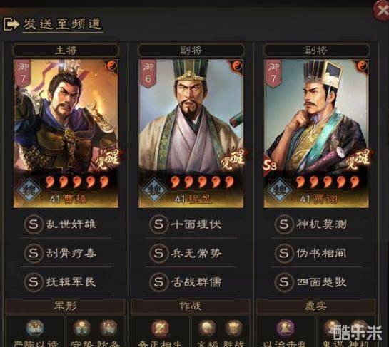 这里不推荐程昱带其他输出战法了,理由是程昱会被贾诩混乱,程昱的定位是补伤害,和高智力辅助,带阵法和指挥技他不香吗?其他直接的主动伤害技能直接给贾诩带就好了。