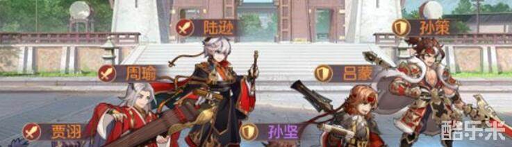 其中关于队伍的站位,一号位是孙策、二号位是吕蒙、三号位是孙坚,这三个武将是队伍的前排英雄,孙坚和吕蒙是主要的坦克的选择。四号位陆逊、五号位周瑜、六号位贾诩,在后排的角色的生命值都较低,需要前排的肉盾的保护。