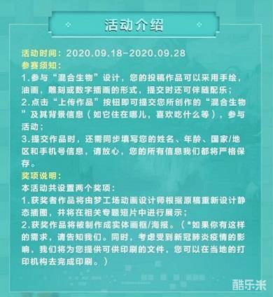 2020年9月18日起至9月28日活动期间内,只要遵循 “混合生物”的设计理念,搭配上一些“疯狂”的想法,嗒哒~专属于你的史前动物就诞生啦!无论你是采用手绘或者数字的形式,或者灵感踊跃,拿出画笔来一幅浓墨重彩的油画,都可以参加本次活动。当然如果你足够心灵手巧,雕刻的作品也会被一并收录在案。