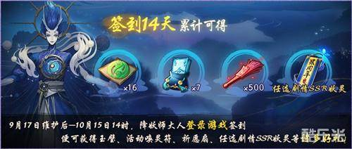 庆典现场将举行多轮幸运抽奖,降妖师们凭入场券观看庆典即有机会赢大奖,更有全服好礼普降惊喜;游戏内持续签到即可领取好礼,达成签到天数目标还可解锁任选剧情SSR妖灵;30位妖灵携免费唤灵机会来贺,最多165次免费唤灵机会任你领取!