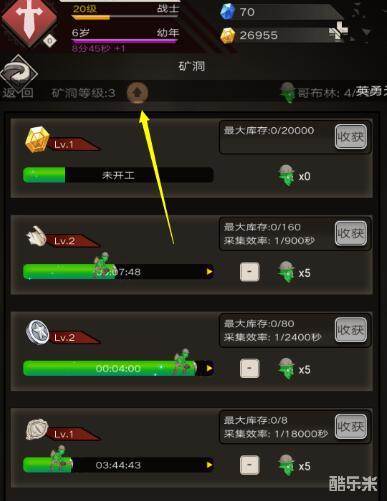 在上图中,点击矿洞的等级旁边的按钮即可进行矿洞的升级。