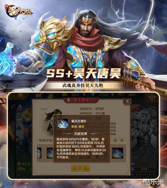 昊天唐昊的武魂真身被动技能昊天九绝在达到最高等级后,可以让唐昊在PVE战斗中获得40%的增伤,这个幅度已经非常大了。而且每9秒,唐昊除大招外的其余3次攻击可以获得70%的护盾穿透和100%伤害提升。而且还将附加一个DEBUFF“位面牵引”,降低对方30点移动速度和50%的物理防御和减伤。