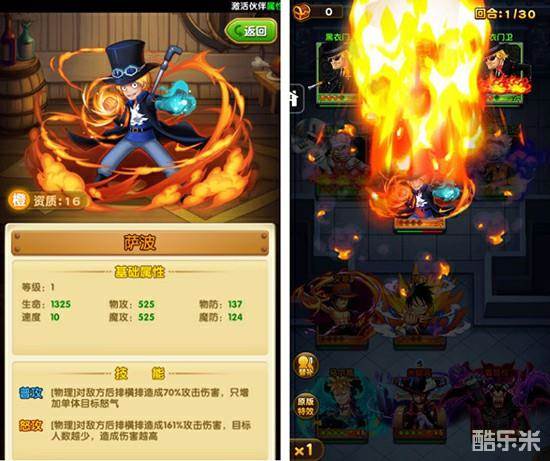 除了新的“空岛探险”玩法外,游戏还为各们船长们准备了新的突破红卡,即路飞的义兄萨波,自小就与艾斯、路飞结为兄弟,这次在游戏中突破为红卡可谓是众望所归。吃下了烧烧果实的萨波,继承了艾斯的意志,在游戏中,萨波操纵火焰攻击敌方后横排,攻击时回复自身血量,专属宝物还能让萨波持续的补充怒气,在战场上简直就是犹如梦魇般的存在。萨波的升红,势必让路飞三兄弟的阵容更加强大!