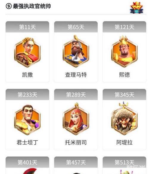 然后是最强执政官统帅,这个活动每个统帅会有四次活动,这个武将获取难度相对来说很大,一般都是氪金玩家才会参加的活动,其他玩家都是攒资源加速拿一次需要的。