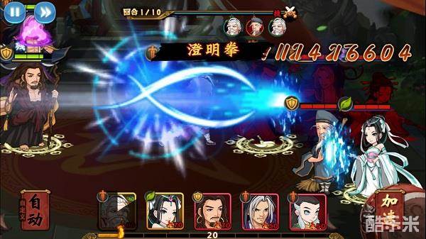 然后,微信菌要说,顽皮老人最变态的地方就在此——分心二用术。普攻回合有几率释放“澄明拳”。意味着顽皮老人不消耗怒气也可以释放主动技能。澄明拳的“低落”效果持续两回合,机会把握的好的话,可以让对方一排的侠客无限低落。