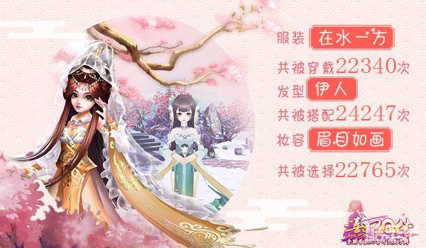 二测中新增的时装让爱美的小主们大呼过瘾,女孩子嘛,当然要拥有一个自己的衣帽间,肆意穿搭,其中服装“在水一方”共被穿戴22340次,发型“伊人”共被搭配24247次,妆容“眉目如画”共被选择22765次,百花丛中想要出奇制胜,就是要打扮得漂漂亮亮的!