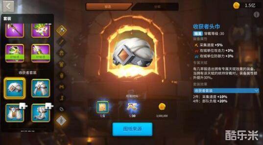 这个收获者套装的效果在采集上比较突出,可以提供30%采集速度、20%负载、十几点的三维属性,但是这个套装图纸比较难获得而且收益并不是很高,玩家们刚开始用一下还可以,后面如果没什么收益就不要用了。