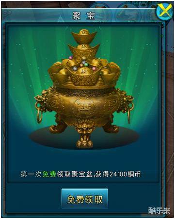 主线任务到达一定等级即可激活聚宝盆功能,激活后的图标于游戏右上方,每天第一次免费,可领取大量铜币,之后将花费元宝获得铜币,VIP等级越高,可换取铜币的次数越多。