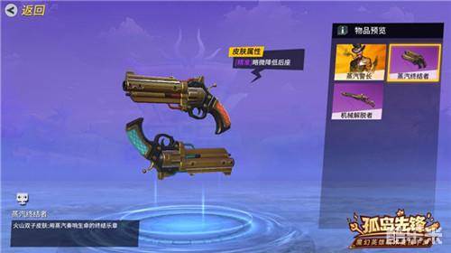 充满熟男魅力的怀特·厄普从荒野独侠变身精英警长,以另一种形象惩恶扬善。本周更新后,先锋官们可通过抽取“蒸汽警长礼包”随机获得怀特·厄普外观“蒸汽警长”、火山双子皮肤“蒸汽终结者”、双管猎枪皮肤“机械解脱者”,也可以通过购买“蒸汽警长捆绑包”一次收获以上精品外观。