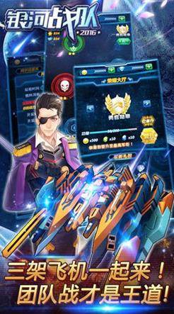 银河战队2016是一款竖版飞行射击类游戏,玩家作为战队统帅,组建自己的战队,灵活运用领军者和天空战机组合,在浩淼的宇宙之中,击败外来入侵者,保卫银河系。游戏中创新的引入了机队一同出击的玩法。玩家战斗中可以根据战况不同选择合适的战机。游戏操作采用经典的手指触屏操控,轻划手指,战机划破苍穹!Boss追击,盗梦空间,多种特色玩法让您爱不释手。弹幕丰富,战机繁多,炫爆的场景让您流连忘返!